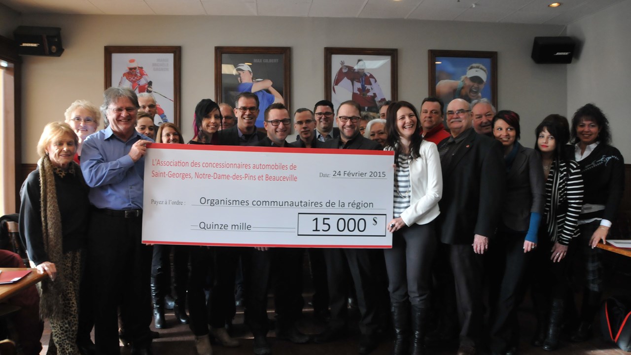 L'Association des concessionnaires automobiles de Saint-Georges, Notre-Dame-des-Pins et Beauceville a remis 15 000 $ à 15 organismes différents de la région lors d'une conférence de presse plus tôt aujourd'hui (24 février).