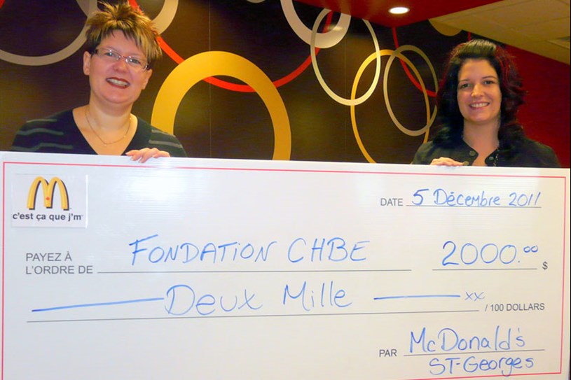 Chantale Ross, propriétaire des restaurants McDonald’s de Saint-Georges, a aussi versé un don  de 2 000 $ à la Fondation. Une partie de cette somme a été amassée le 10 novembre, lors de la cérémonie d’ouverture officielle du restaurant McDonald’s revampé situé sur le boulevard Lacroix. Pour chaque,  Big Mac et McCafé vendu lors de cette journée, un 1$ était versé à la Fondation. La propriétaire a complété le don d’un montant personnel.