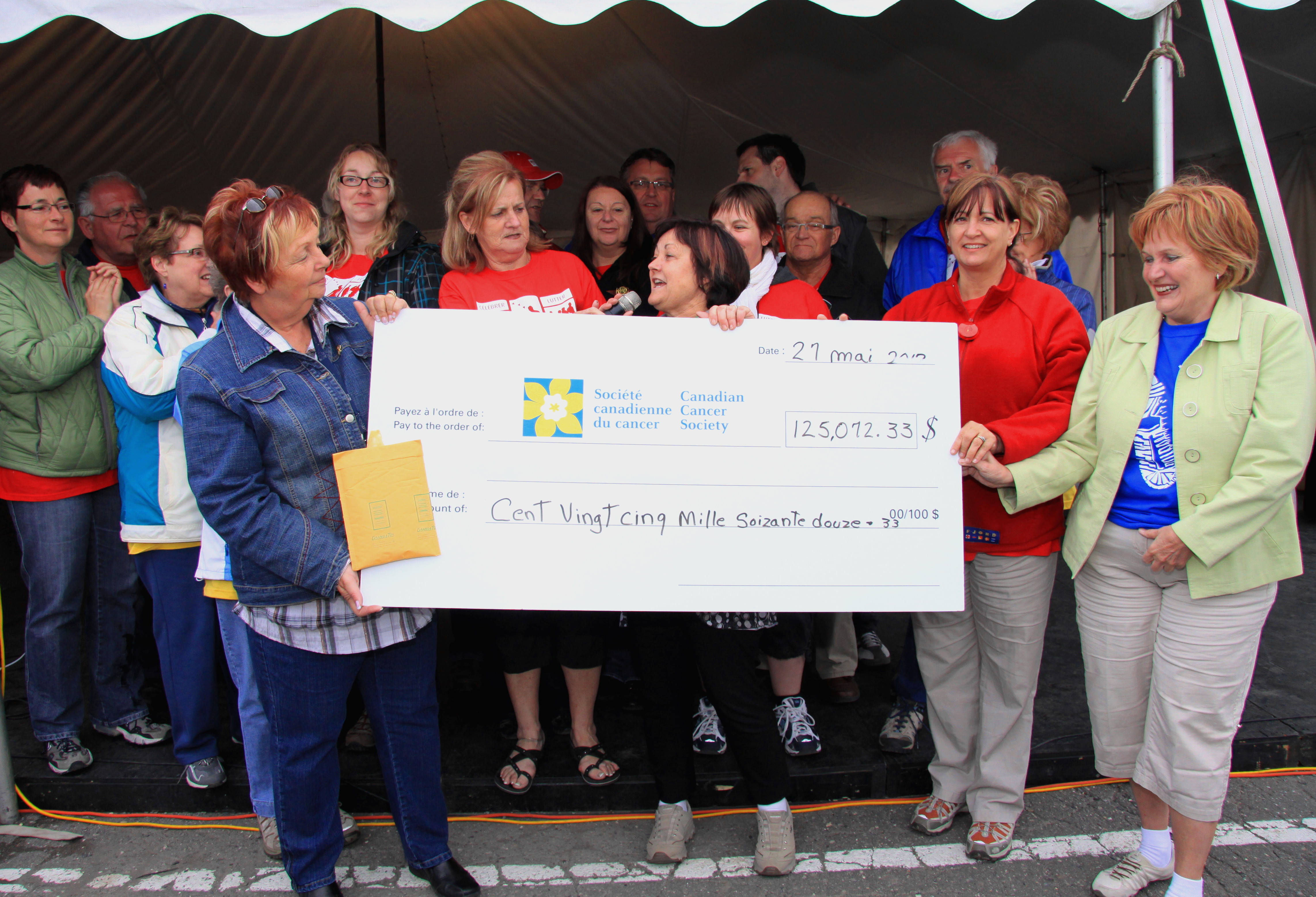 L’an dernier, 56 équipes et 600 marcheurs avaient permis d’amasser 163 000 $. Notons que les 125 000 $ amassés cette année iront à la Société canadienne du cancer. Elle pourra poursuivre sa mission, soit l'éradication du cancer et l'amélioration de la qualité de vie des personnes touchées par le cancer. Les sommes recueillies pourront appuyer la recherche, les services d’information, les programmes de soutien dans la communauté et assurer la défense de l’intérêt public.