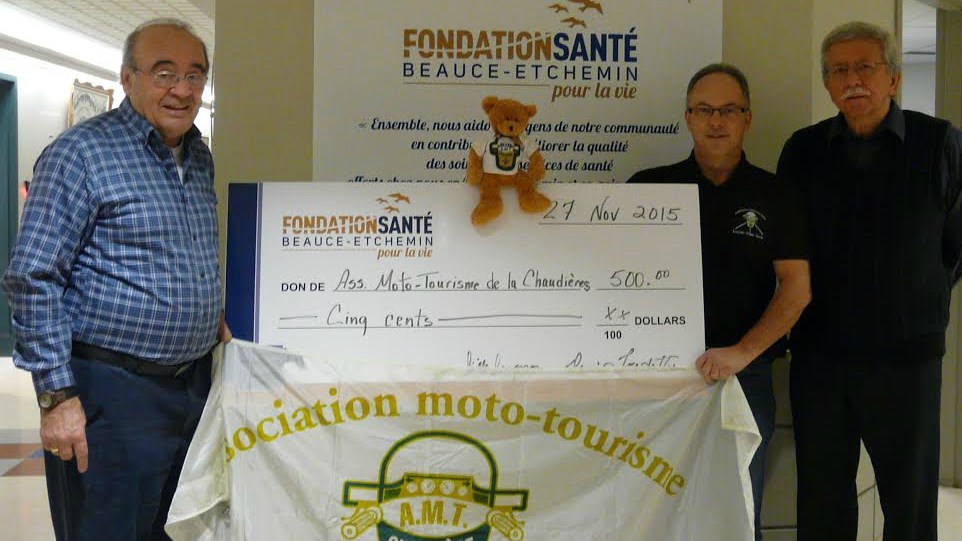 La Fondation Santé Beauce-Etchemin (FSBE) a reçu un don de 500 $ de la part de l'Association Moto Tourisme Chaudière.
