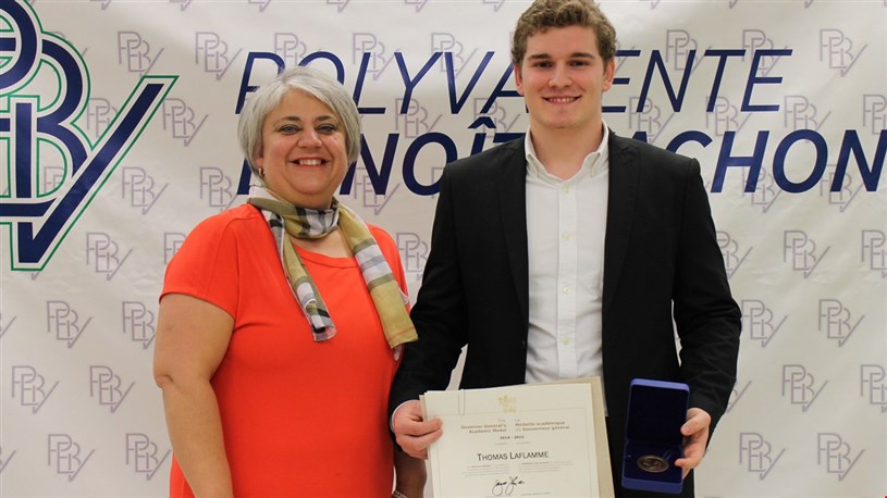 Thomas Laflamme, finissant en juin 2015, a reçu la médaille du Gouverneur général pour la meilleure moyenne générale de sa cohorte.