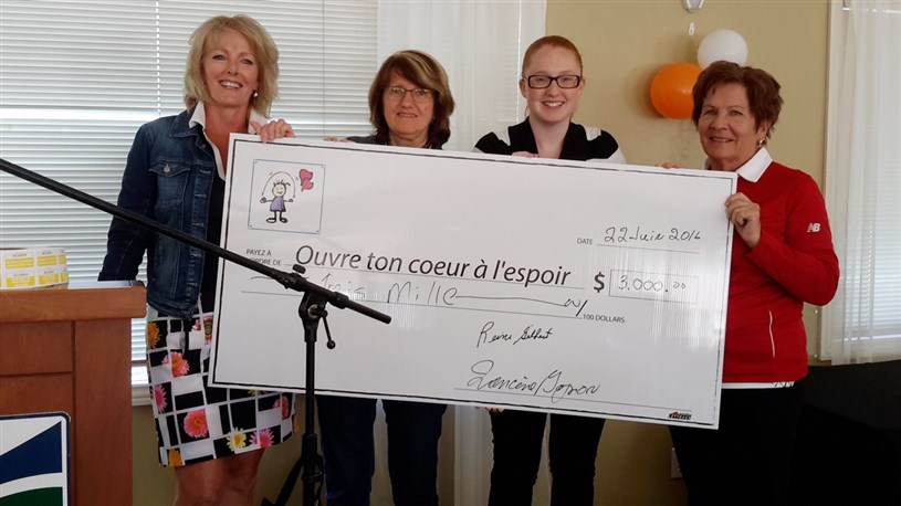 Dans le cadre de la 12e édition « Invitation Angèle » qui se tenait le 22 juin 2016 au club de golf de Beauceville, un don de 3 000 $ a été remis à l’organisme Ouvre ton cœur à l’espoir.