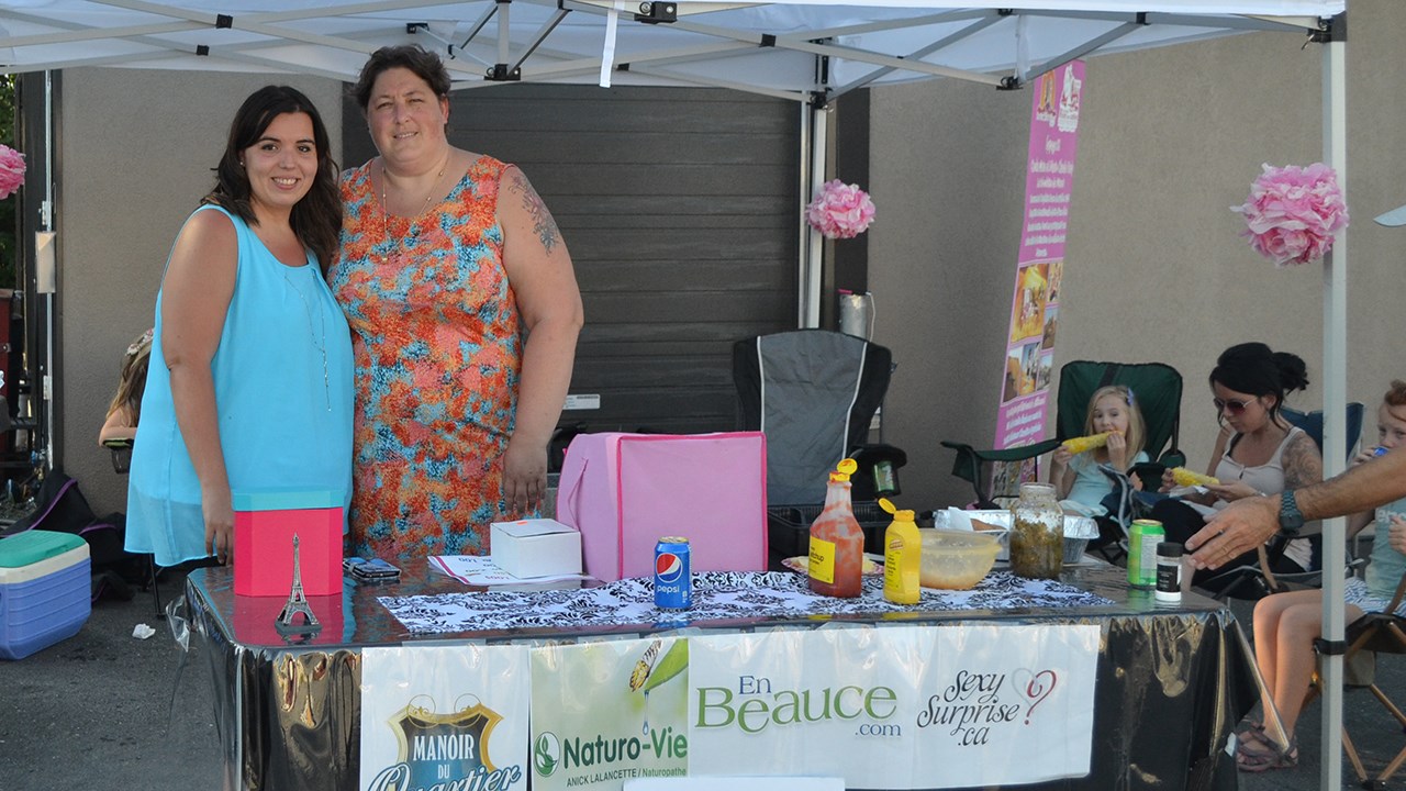 Caroline Quirion et Marie-Claude Hardy ont organisé un BBQ lors duquel elles ont vendu des hot-dogs et du maïs ainsi que des boissons. Elles avaient amassé 300 $ vers 15 h 30 et s’attendaient à atteindre 500 $ au terme de l’événement qui a duré de 11 h à 18 h. Environ une centaine de personnes sont venues les encourager. Sur ce montant, 10 % sera remis à la Société Alzheimer Chaudière-Appalaches.