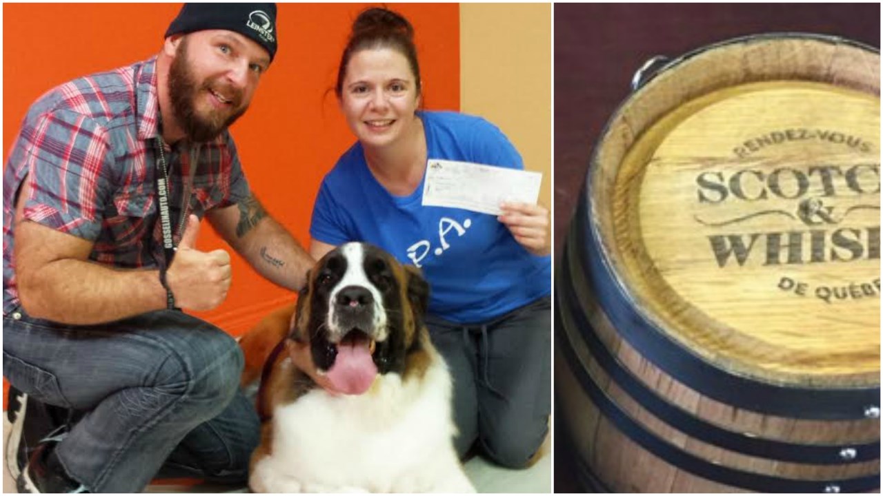 L'animateur radio, Marto Napoli, a remis dernièrement un montant de 1000 $ à la SPA Beauce-Etchemin à la suite de son idée de faire brasser du whiskey et du bourbon par un chien Saint-Bernard.
