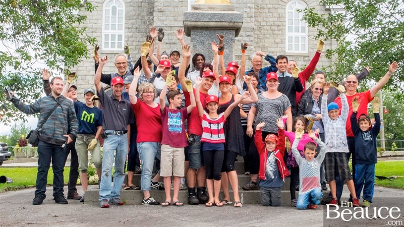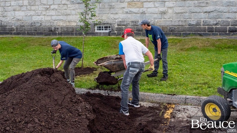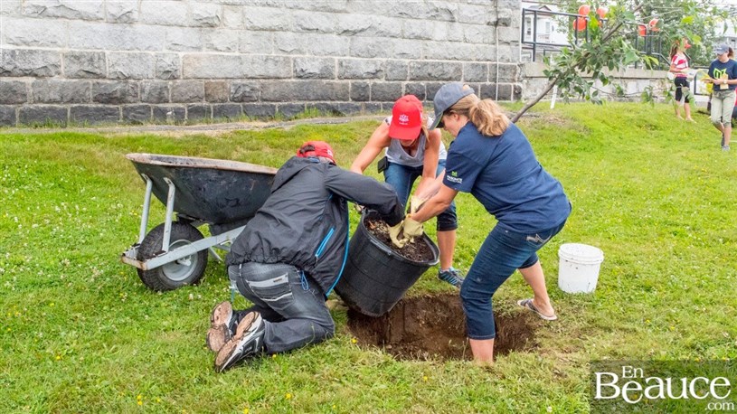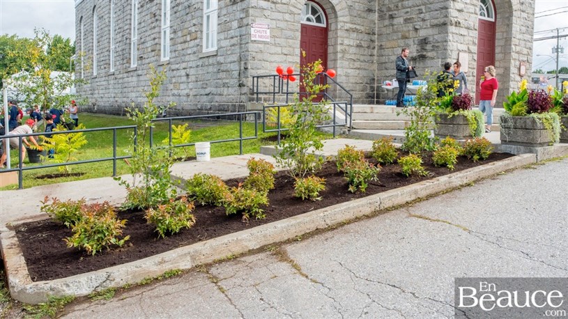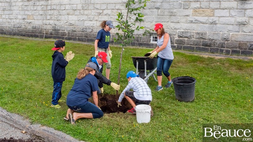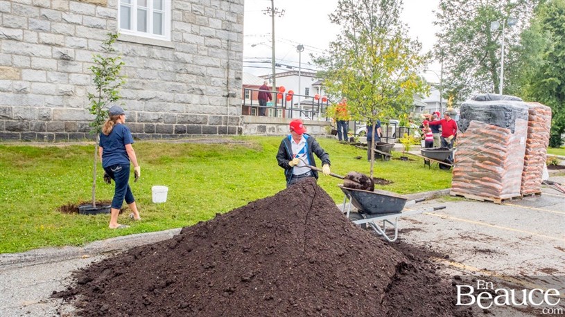 À la sortie de la messe, aux alentours de 10h, les fidèles ont eu la surprise de voir les environs de l'église transformés grâce à l'implication de nombreux bénévoles engagés aux côtés du comité d'embellissement de Saint-Éphrem. Ce dernier était parvenu cette année à recevoir une subvention du programme Canada 150 d'Arbres Canada, consistant à célébrer le 150e anniversaire de la Confédération à travers 150 plantations d'arbres partout dans le pays.