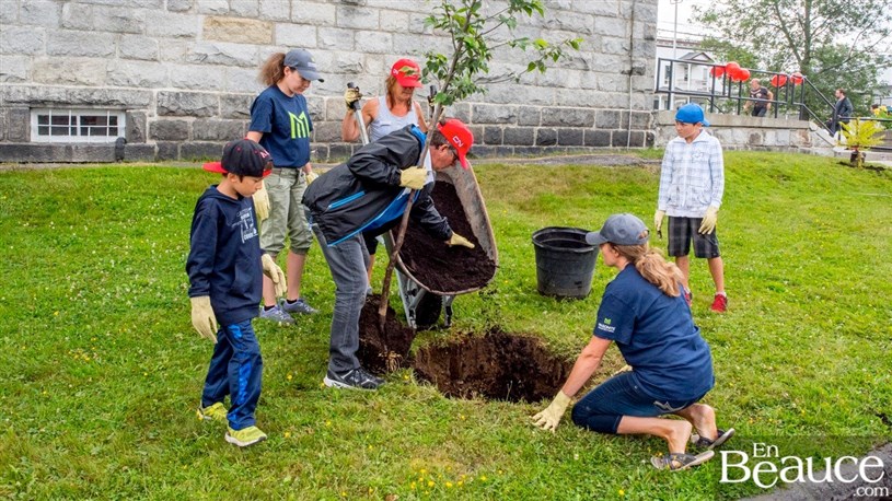 Cette célébration devait souligner les Premières nations et symboliser « la croissance, la force, la durabilité, l'espoir et la paix ». Grâce à ce projet rendu possible par l'appui du gouvernement du Canada, une centaine d'arbres et d'arbustes de toutes sortes ont ainsi été plantés sur les abords de l'église. Petits et grands étaient présents ce matin pour donner un coup de main au projet et contribuer dans la bonne humeur à l'embellissement du centre-ville.