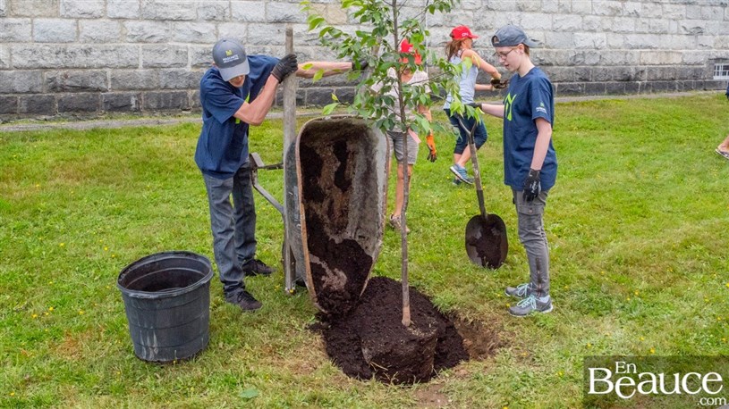 Une centaine d'arbres et d'arbustes ont été plantés autour de l'église de Saint-Éphrem dans la matinée du dimanche 20 août par des bénévoles motivés qui n'ont pas hésité à retrousser leurs manches pour commémorer dignement les 150 ans du Canada.