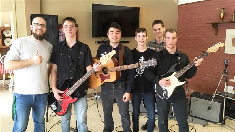 Johny Faucher, William Zacharie, Samuel Therrien, Ludovic Tessier et Denis Blanchet, des jeunes du secondaire, étaient sur scène pour ce spectacle coordonné par l’enseignant de musique de l’École des Appalaches, Pierre-Oliver Fortin.