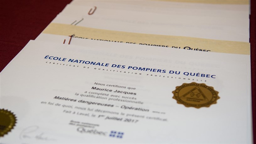 Au total, 90 diplômes ont été remis pour attester de la réussite des programmes suivants : Pompier 1, Opérateur d’autopompe, Opérateur de véhicule d’élévation, Matières dangereuses Opération, Officier non urbain, Officier 2 et Pompier 2.
