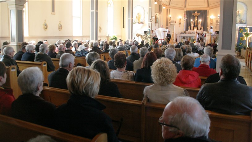 C’était évidemment salle comble à l’intérieur pour cette célébration religieuse particulière. Des chaises ont dû être ajoutées à l’arrière pour que tous profitent de la messe. Un petit concert précédait la célébration, offert par un groupe local. Le dîner qui suivait la messe était aussi sous animation musicale, celle de deux chansonniers.