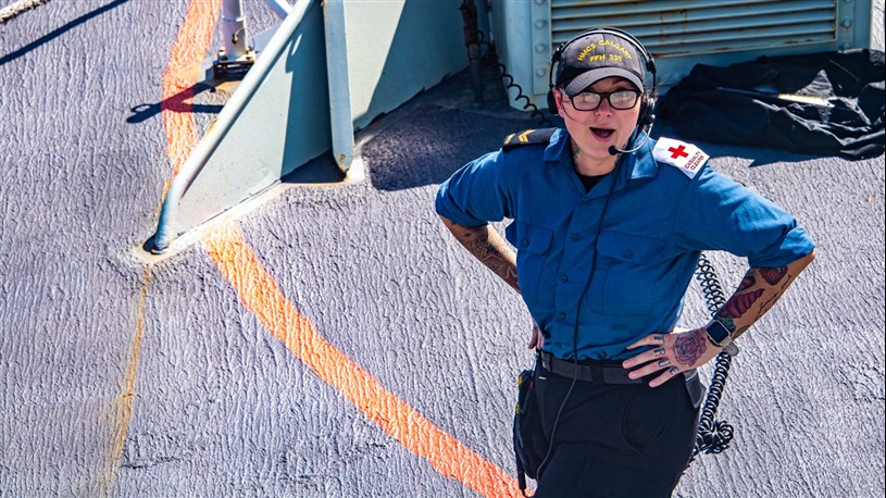 Puis, elle a laissé l'armée en 2013 pour travailler dans le secteur ferroviaire, mais elle s’est réenrôlée en 2018, cette fois comme technicienne en gestion du matériel dans la Marine royale canadienne (MRC). Elle est matelot de 1re classe (Mat 1) à bord du Navire canadien de Sa Majesté (NCSM) Calgary qui participe, dans les eaux moyen-orientales, à des opérations de lutte à la contrebande.