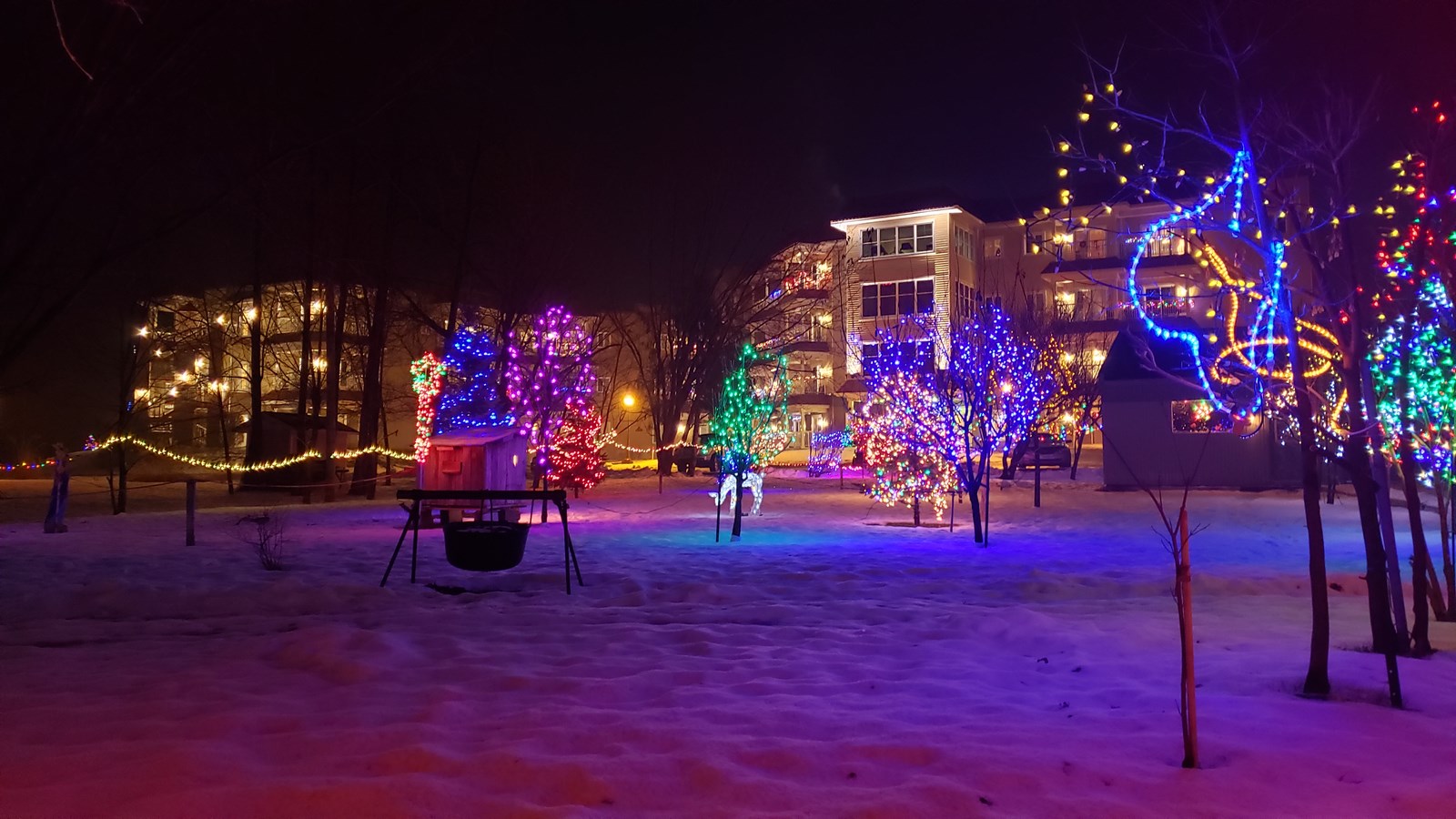 Le terrain brille de mille feux chez Jeannine Poirier qui a terminé d'installer ses nombreuses lumières de Noël.
