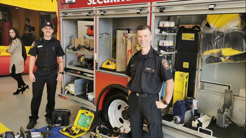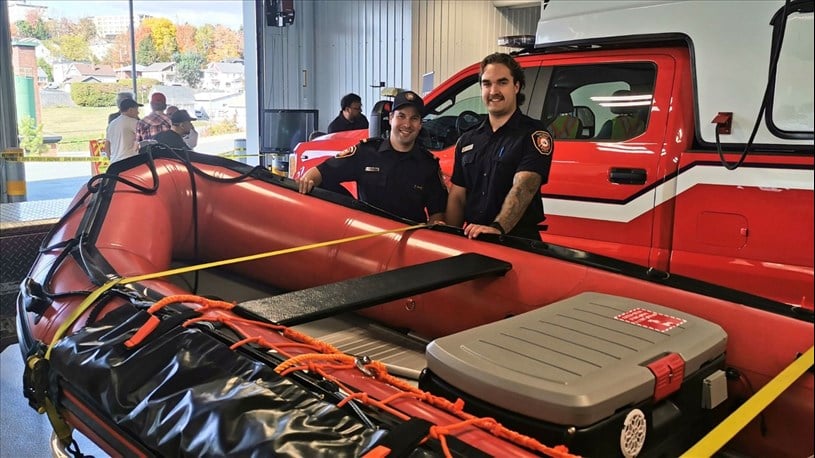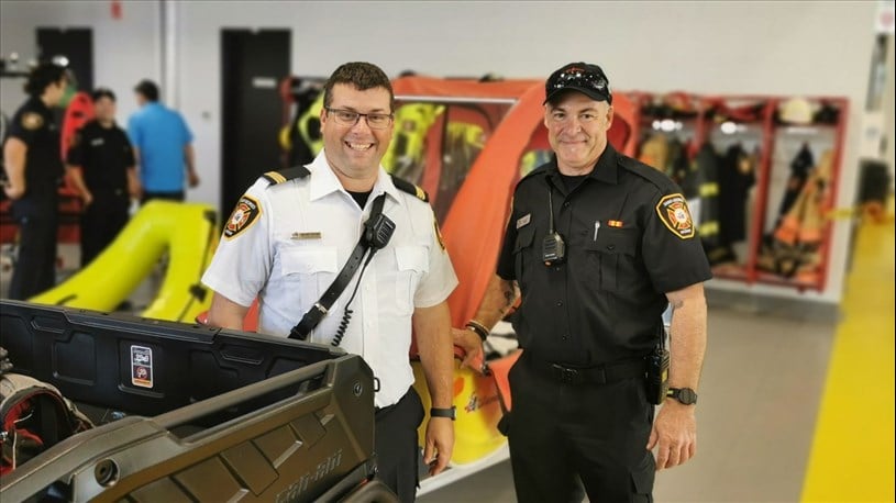 Les pompiers Zachary Frenette et Régis Poirier.