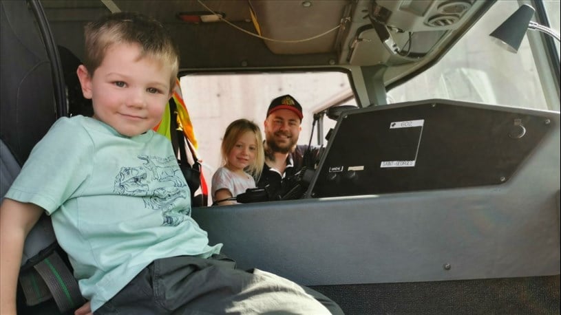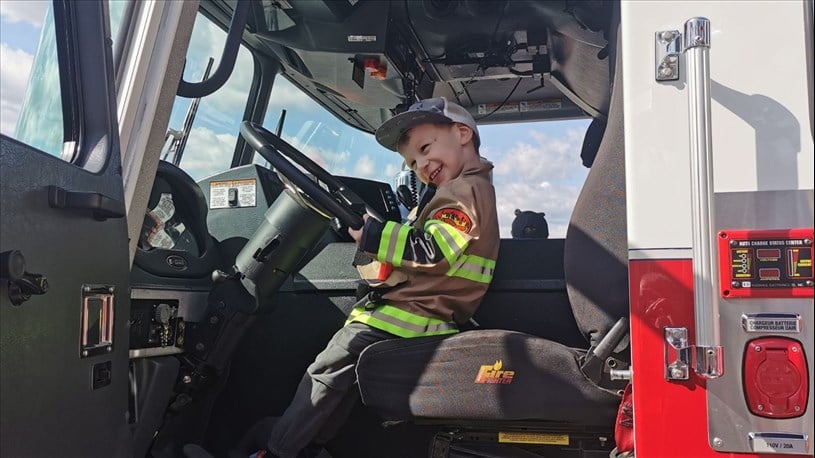 Éthan a célébré ses 4 ans au volant de cet engin. Peut-être un futur pompier à voir son sourire éclatant.