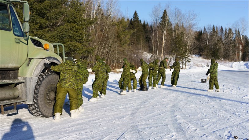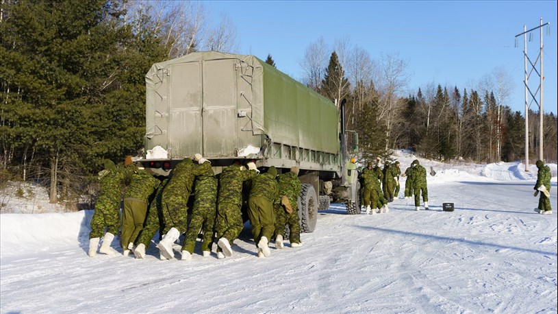 Le Régiment de la Chaudière s’est installé à la Cité sportive Rotary de Beauceville pour un exercice de familiarisation a effectué des tâches militaires en conditions hivernales.