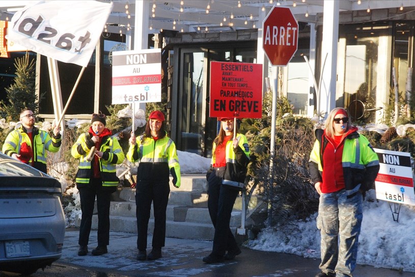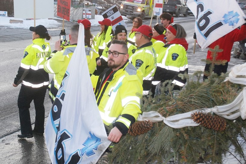 Des paramédics manifestent devant Bernard Drainville à Saint-Georges