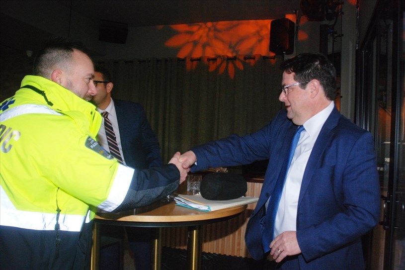 Une trentaine de paramédics de Chaudière-Appalaches et de l’Estrie se sont mobilisés ce jeudi 19 février à Saint-Georges, en marge d’un 5 à 7 organisé par le député de Beauce-Sud et ministre Samuel Poulin, qui recevait le candidat à la chefferie de la CAQ, Bernard Drainville.