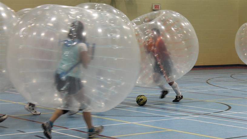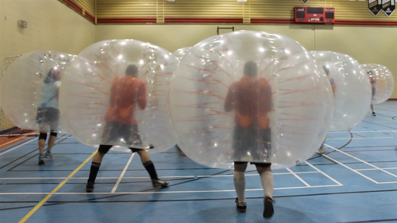 Jouer au soccer tout en étant protégé par une bulle protectrice en plastique. Les plaquages sont permis et, malgré ces rudesses, il n’y a pratiquement aucun risque de blessure. Pour le reste, les mêmes règlements du soccer s’appliquent. Voilà, en quelques mots, de quoi à l’air le Bubble Football.