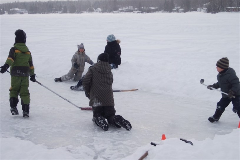 Les plus petits ont eu droit à une patinoire improvisée sur le lac afin de jouer au hockey.