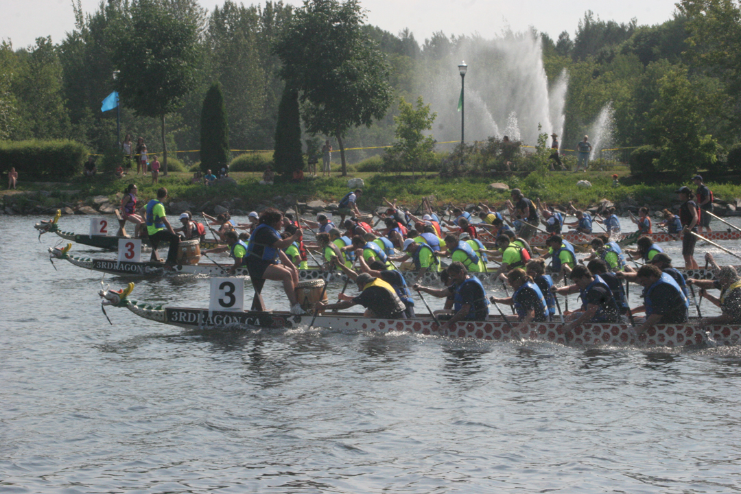 S’il est habituel, voir traditionnel de voir de fortes pluies pendant la fin de semaine du Woodstock en Beauce, c’est tout le contraire pour la course des bateaux dragons présentée à Saint-Georges. En effet, les organisateurs sont condamnés à présenter l’événement sous une chaleur accablante année après année. Encore une fois pour l’édition 2012, un soleil tapant a fait rougir les participants comme les spectateurs. Beaucoup d’eau s’est bue sur l’île Pozer et il est à parier que les rameurs auraient préféré faire le parcours à la nage, question de se rafraîchir.