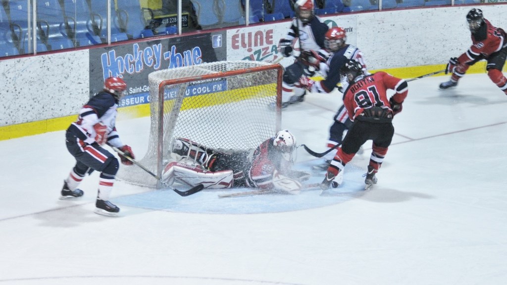 Les visiteurs ont rapidement pris l’avance en première période avec deux buts en 14 secondes. Hubert Fréchette et Jean-Christophe Boisvert ont été les marqueurs.