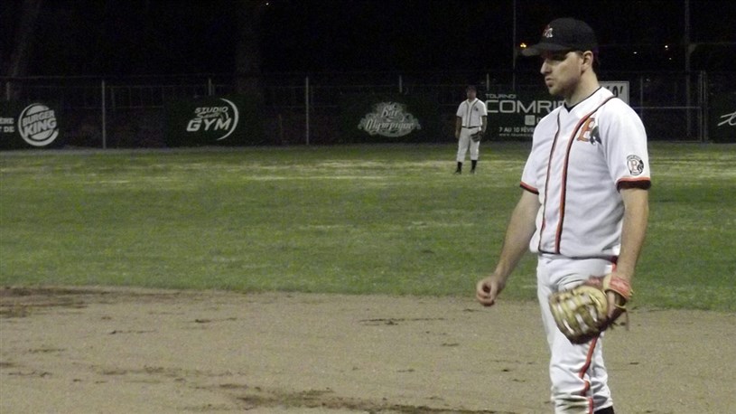 Pour ce premier match, Jimmy Chabot était d’office au monticule pour les Jarrets Noirs. Il a connu deux bonnes premières manches avant de rencontrer quelques difficultés en troisième. Il doit une fière chandelle à son joueur de troisième but, Frédéric Parent. Avec deux retraits et les buts remplis, ce dernier a effectué un superbe plongeon pour capter un roulant et ainsi étouffer la menace.