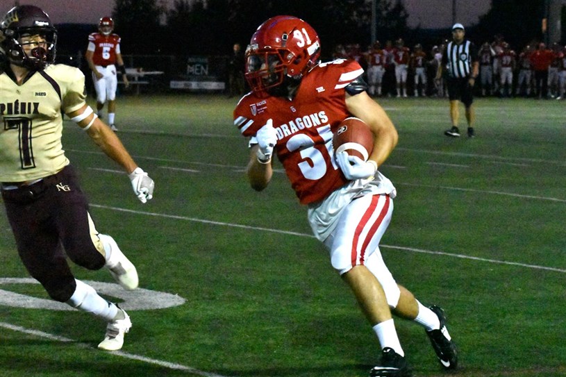 Félix-Antoine Thibault récupère un ballon échappé par l’adversaire, puis Zach St-Hilaire fait de même avec moins de deux minutes au match, permettant à Antoine Gosselin de confirmer la victoire des Dragons avec un touché qui portait la marque à 28-70.