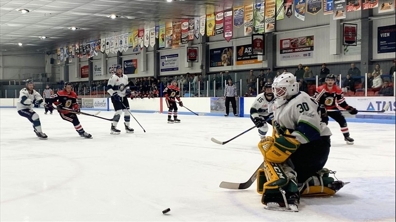 Dans le dernier match de la soirée – et de la fin de semaine – présenté au Centre Caztel de Sainte-Marie, un doublé d’Alexandre Larouche a conduit le Décor Mercier de Montmagny vers un gain de 4-3 sur le Giovannina, rencontre présentée devant 580 spectateurs.