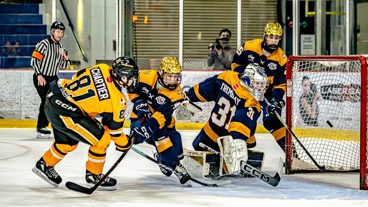 Benjamin Tremblay était devant le filet pour les Albatros, tandis que les Chevaliers avaient comme portier le numéro 1, Zachary Lainesse.