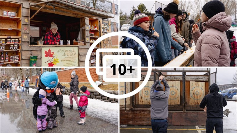 Tire d'érable, jeu gonflable, lancé de hache et tour de calèche étaient au menu pour le rassemblement Tire-toi une bûche. Le tout, en présence de la célèbre mascotte, et ce, pour le plus grand plaisir des enfants.