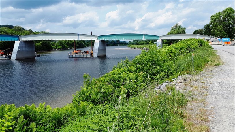 Les travaux de construction du pont ferroviaire, qui enjambera la rivière Chaudière à Vallée-Jonction, «avancent à un rythme soutenu.»