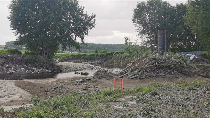 Rappelons qu'en juillet dernier, les travaux de construction de la passerelle pour enjamber le cours d'eau — qui établit la division territoriale entre Saint-Joseph-de-Beauce et Beauceville —, ont été complètement interrompus, après que des pluies torrentielles aient causé le débordement de la rivière, et emporté une partie du remblai ferroviaire, qui devait constituer un des axes du pont.
