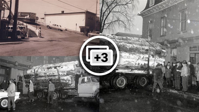 Examinez la 1re photo. En arrière-plan, l'édifice Smith, magasin de vêtements pour dames. Et à gauche de la montée, un véhicule wagonette VW 1960 de Catellier Radio & Télévision. Un décor qui nous était familier il y a plus de 50 ans. Wow, quel souvenir.