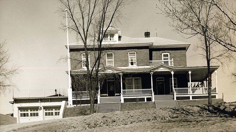 Étant à la fois maire, prospère marchand et notable respecté de notre ville, Joseph Gagné acheta en 1916 de Joseph Veilleux une magnifique résidence qui fut construite sur les hauteurs par les renommés frères Bérubé au tournant des années 1900 (photo 2, de 1913). C'est celle qu'on voit en haut, au tiers gauche de la photo, à une époque où le boulevard Lacroix n'existait pas encore. La 3e photo nous la montre en gros plan plusieurs années plus tard. La plupart auront reconnu la prestigieuse résidence (souvent appelée la «maison Lacroix») qui a appartenu par la suite, à partir de 1941, à M. Henri Lacroix, un des propriétaires de la manufacture voisine Saint-Georges Wollen Mills. C'est lui qui a érigé le garage double à gauche sur cette photo. Elle fut acquise par la ville le 27 avril 2009 et démolie en 2015. On a érigé sur ce site la caserne de pompiers, à côté de l'église l'Assomption.