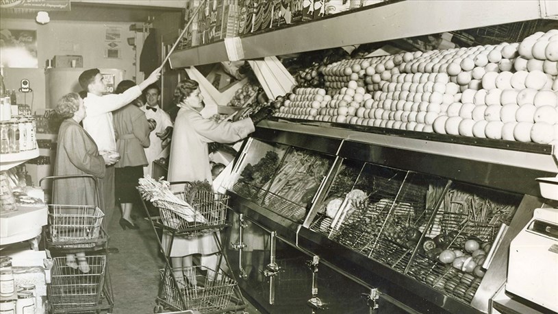 En 1955, M. Bernard ayant décidé de se lancer dans le domaine de l'hôtellerie, M. Lacasse acheta sa part pour devenir l'unique propriétaire de l'établissement. Comme la famille Lacasse comptait 12 enfants, plusieurs ont travaillé à l'établissement de leur père, dont Charlotte qui était caissière (la photo 4 nous montre l'allée où se trouvait la caisse) et Jean-Louis au service de livraison. Aussi un autre fils y a travaillé à temps partiel pendant ses études: le docteur P-H Lacasse, qui fut plus tard maire de la ville de Saint-Georges. M. Louis-René Fortin y fut longtemps boucher, c'est lui qu'on voit parmi les clientes sur la 5e photo, celui en chemise blanche avec boucle au cou.