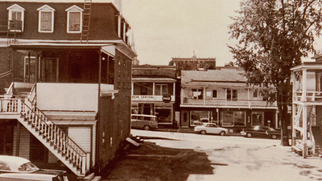 Il semble que le Marché Central fut fondé en 1945 par le boucher Ovide Giguère, alors établi dans l'immeuble où fut plus tard situé le restaurant Chez Francine (photo 3). En 1947, MM Roméo Lacasse et Léandre Bernard s'associèrent et achetèrent ce commerce. Ils ont décidé d'aller se fixer ailleurs et sont allés s'installer plus au sud sur la 1re avenue, juste à côté (nord) de l'ancien pont de fer (photo 2). Les deux hommes d'affaires ont maintenu leur collaboration pendant sept ans.