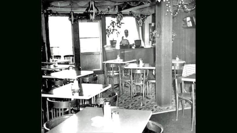 Vers 1968, il déménagea juste en face et installa son commerce au rez-de-chaussée, tandis que sa famille résidait au deuxième (photo 4). C'était un style vraiment unique comme local. Les tables étaient recouvertes de nappes à carreaux rouge et blanc (photo 5) sur lesquelles il y avait au centre une bouteille décorative de vin Chianti dans laquelle était insérée une chandelle, de sorte que la cire s'accumulait au fil des semaines autour de toute la bouteille dont le bas était décoré de paille, comme on le voit à la 6e photo. Décoration à la fois simple mais si originale. Et il y avait aussi des filets de pêche au plafond, créant une atmosphère unique (photo 7).