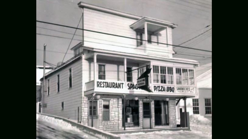 C'est en 1964, que M. Salvatore Abbatiello et son épouse se sont établis à Saint-Georges et y ont ouvert le restaurant Salvatore, sur la 2e avenue, dans un immeuble qui existe encore et qui a longtemps logé le Club Aramis. Presque en face de l'ancien garage J.W. Morin. On voit la façade sur la 1re photo. Remarquez qu'à l'origine, le nom était «SALVATORE PIZZERIA», comme c'était écrit sur l'enseigne fixée à l'avant de son établissement. De plus, une autre affiche, plus petite, spécifiait que c'était un «restaurant napolitain». région d'où M. Abbatiello était originaire. Au début, des gens le taquinaient en lui demandant «C'est quoi cette tarte au fromage»?