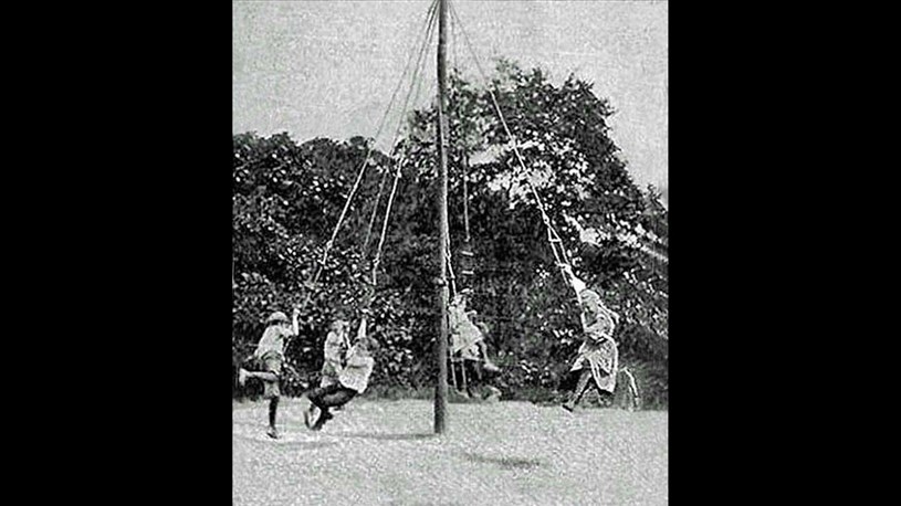 Soeur Supérieure parle aussi du «pas de géant». Le pas-de-géant était un jeu extérieur où les participants, suspendus à une poignée ou un anneau métallique accroché au bout d'une chaine ou une corde, s'élançaient en courant pour tournoyer autour du mât central, de sorte qu'ils étaient soulevés pour quelques pas par la force centrifuge, mais revenaient ensuite vers le sol, y poussaient alors par les pieds pour remonter sans cesse. On appelait ce jeu «pas-de-géant» parce qu'ils pouvaient parcourir une bonne enjambée (équivalant à plusieurs pas) avant de redescendre. D'où le nom de «pas-de-géant».