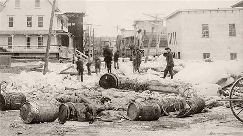 Survint en 1915 le gigantesque incendie qui détruisit plus de 50 maisons, incluant l'hôtel Murtha House. Miraculeusement, l'autre édifice (aujourd'hui le Grand Hôtel) a échappé de justesse à l'incendie et a donc survécu. À l'origine, c'était une maison de chambre au rez-de-chaussée et une salle de «vues animées» au deuxième. Le clergé, qui était omnipuissant à l'époque, s'objecta, et M. Murtha dut réorienter la vocation de son bâtiment. Sa salle a plutôt servi à tenir des réunions diverses, des spectacles, de la danse et même des pièces de théâtre. On le voit à la 3e photo, lors de la débâcle de 1920. Puis Joseph Gagné y a opéré brièvement un magasin général.
