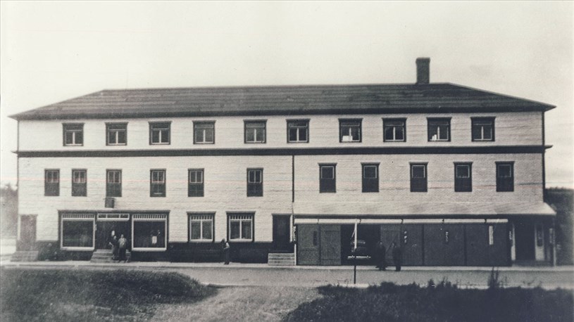 Tout le monde connait cet établissement situé en plein centre-ville, près du pont (photo 1, vers 1975). Le début de cette histoire commence en 1910 lorsque M. Thomas Murtha, construisit un gros édifice blanc, carré et à deux étages près de la rivière. Ce M. Murtha possédait déjà une autre bâtisse imposante située juste en face sur la 1re avenue, soit l'hôtel Murtha House. On les voit bien tous les deux en 1913, à la 2e photo, l'hôtel à gauche et son nouveau bâtiment à droite, carré, blanc et très dépouillé.